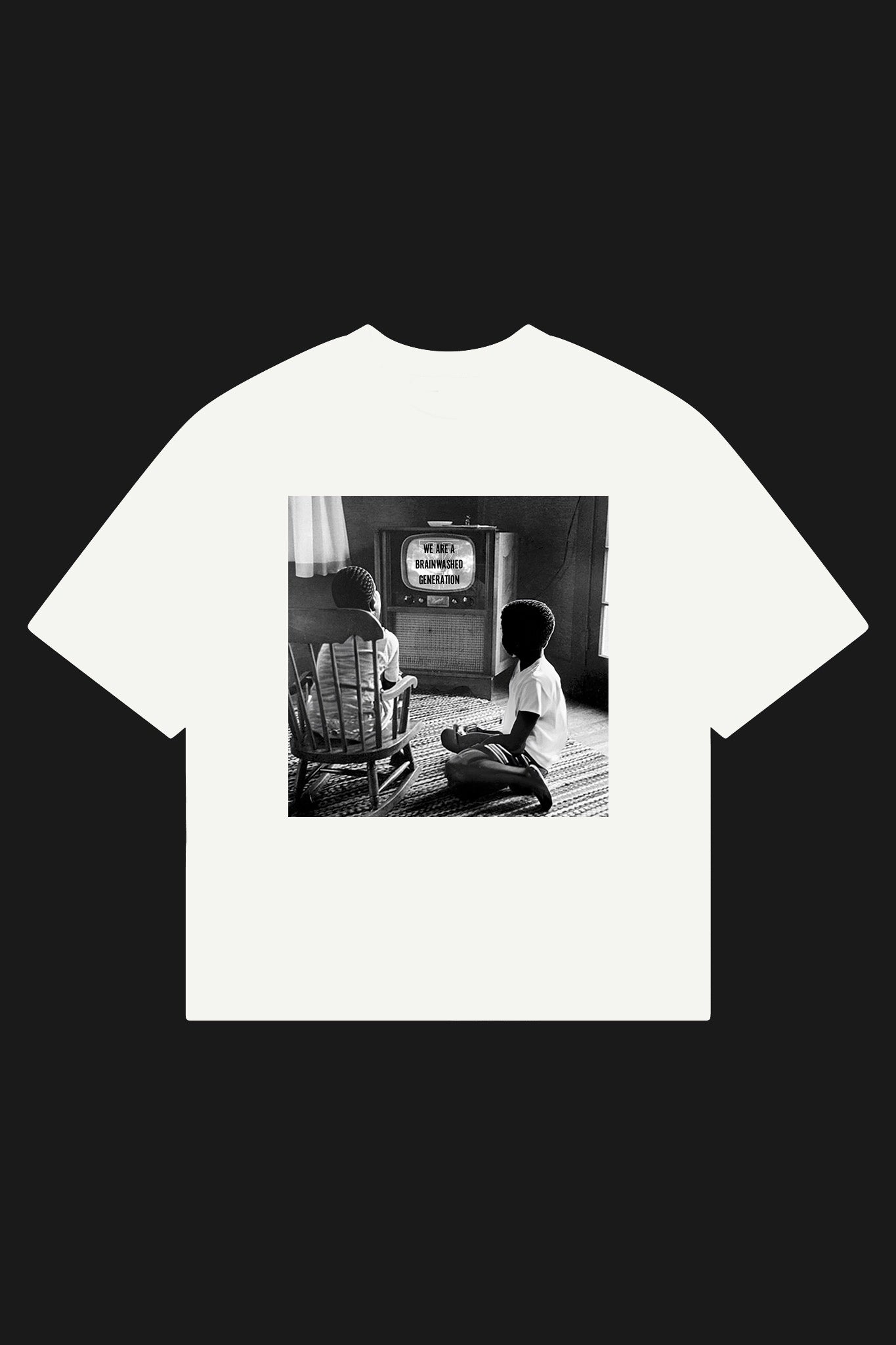 Experience the thought-provoking power of Brainwashed Gen, a new t-shirt designed by truevie. Made with white cotton and a box fitted regular relax fit, this shirt features a powerful image of two young children reading on a TV screen with the statement, "We are a brainwashed generation." Join the conversation and spark critical thinking with this impactful t-shirt.