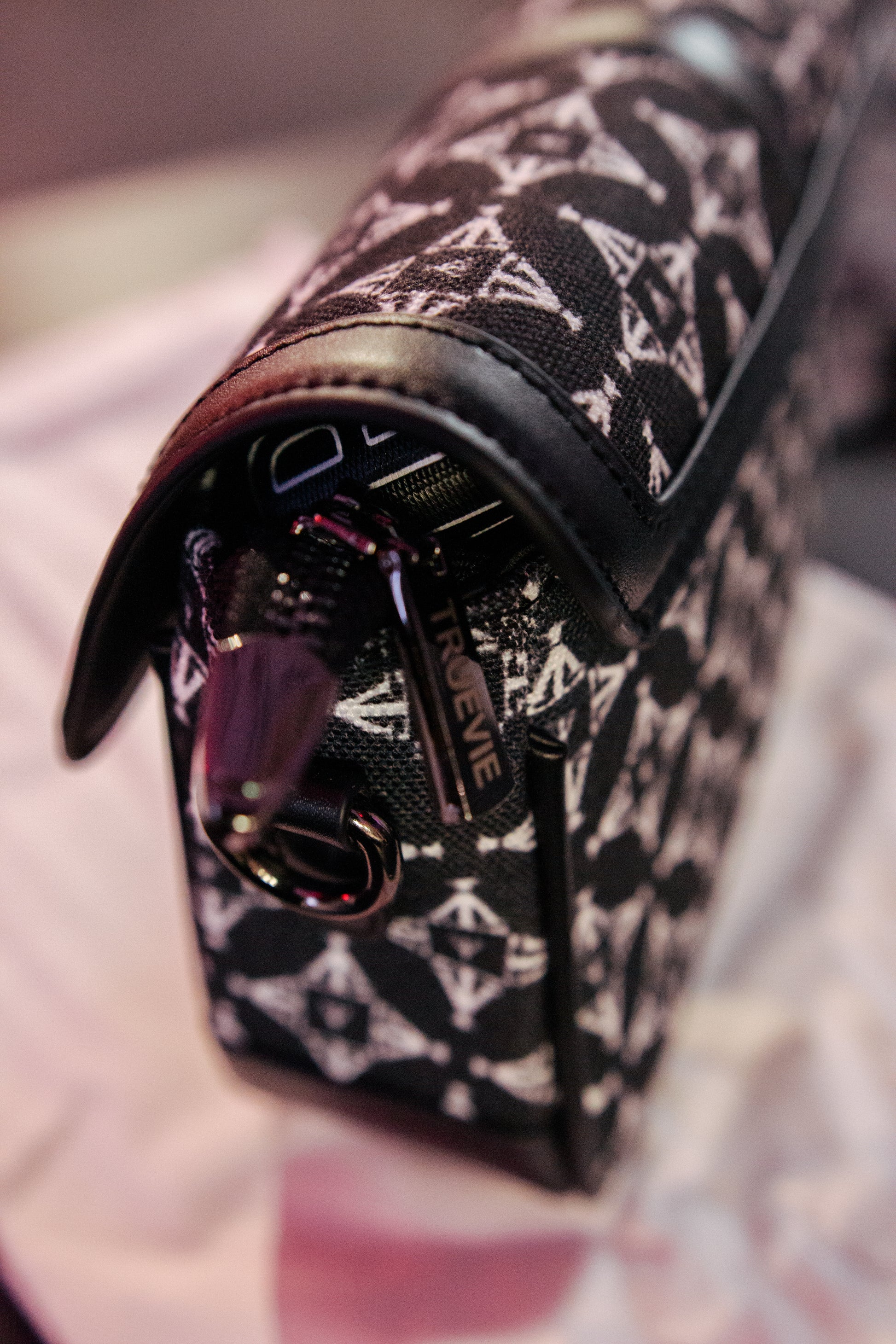 This limited edition TrueVie Signature Messenger Bag is crafted from luxurious black leather and adorned with a unique canvas print of the exclusive TrueVie Signature Pattern. Features include bespoke design, elegant feel, and limited availability. Experience superior quality and craftsmanship with this stylish, premium bag